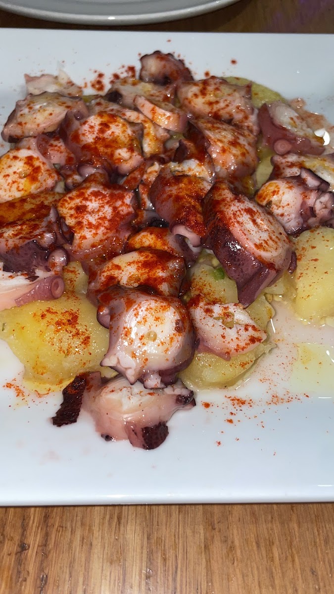 The menu leans heavily into fresh seafood and classic regional flavors. Dishes such as pulpo a la gallega, calamares en su tinta, and paella de mariscos highlight the restaurant’s focus on quality ingredients prepared simply but thoughtfully. There’s also a solid range of hearty meat options like entrecot and costillas de cerdo that appeal to diverse tastes.